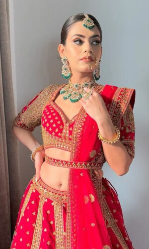 Ready to Ship – Delivery Time: 15 Days This deep bridal red lehenga is crafted with heavy hand-embroidery featuring zardozi, threadwork, sequins, and intricate architectural…