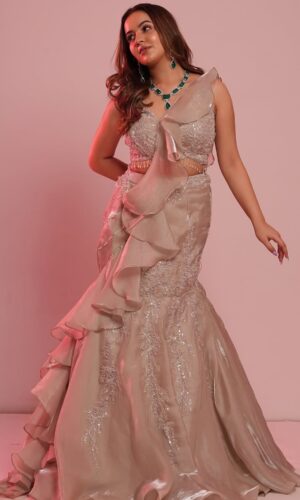 Bold Elegance Indo Western Style Lehenga with Hand Resham Embroidery