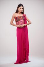 Hot Pink Corset Saree With Lycra and Banarasi Blouse