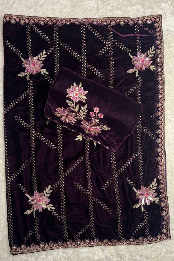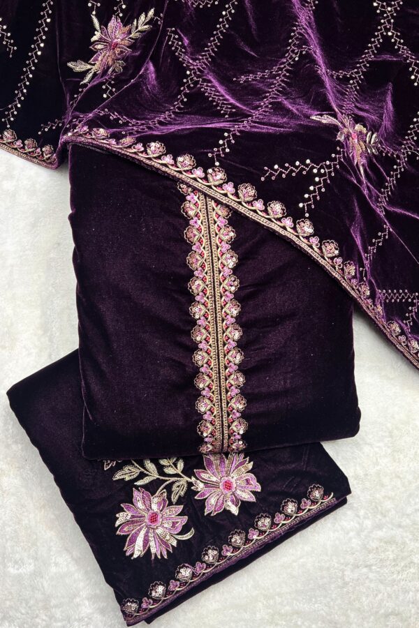 Unstitched Pakistani Suit in Micro Velvet fabric.