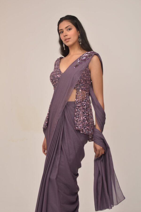 Set Includes: Pre-draped style saree and embroidered blouse Long