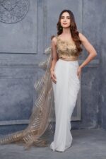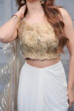 Indo-Western Drape Saree with Golden Highlights and Ruffles