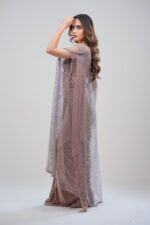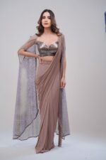 Lycra Draped Saree With Leather Stripped Top and Italian Net Cape